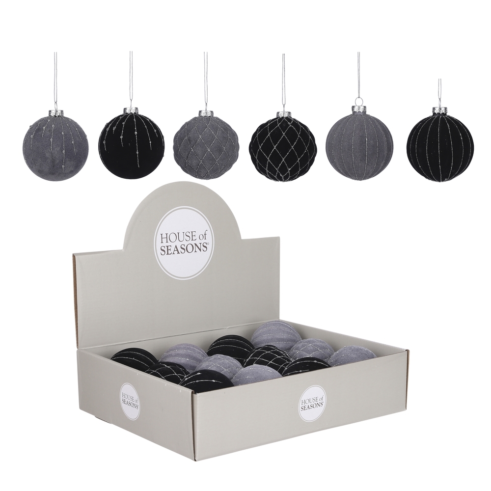 Набор елочных шаров 12шт 8см House of Seasons серый/черный в ассортименте 6 видов