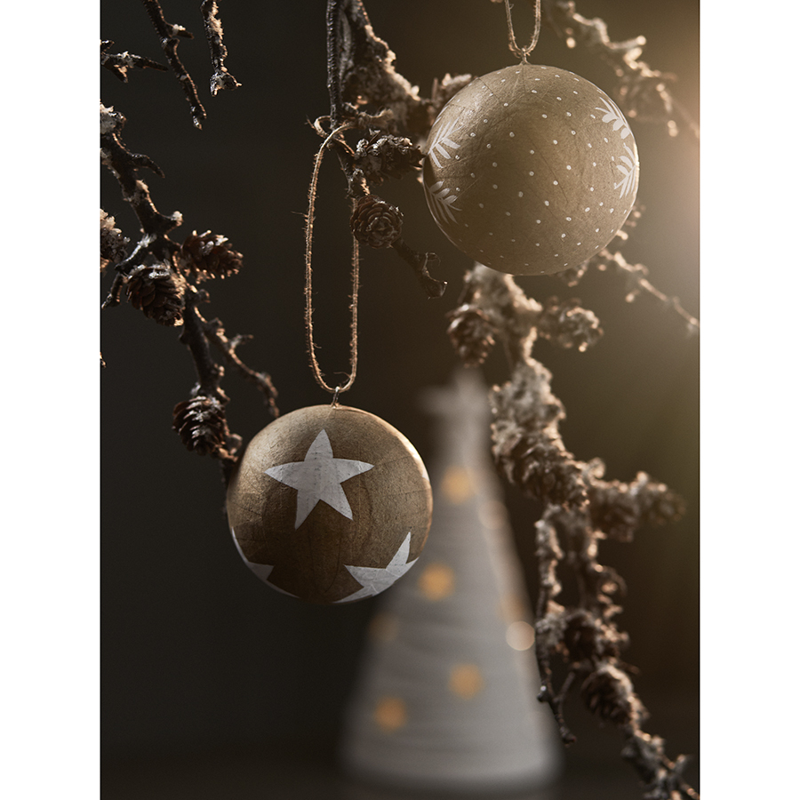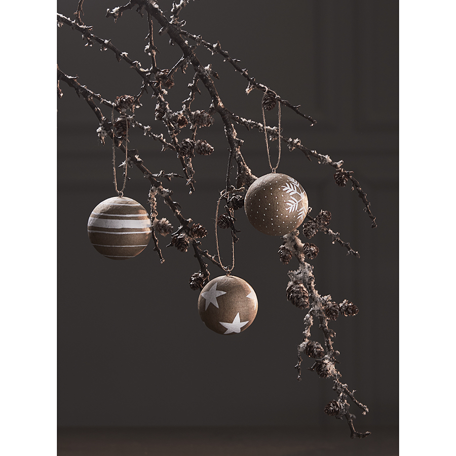 Набор елочных шаров из папье-маше Zero waste из коллекции New Year Essential привнесет в интерьер ностальгические нотки и напомнит о временах, когда новогодние украшения создавались вручную и носили особенный характер.