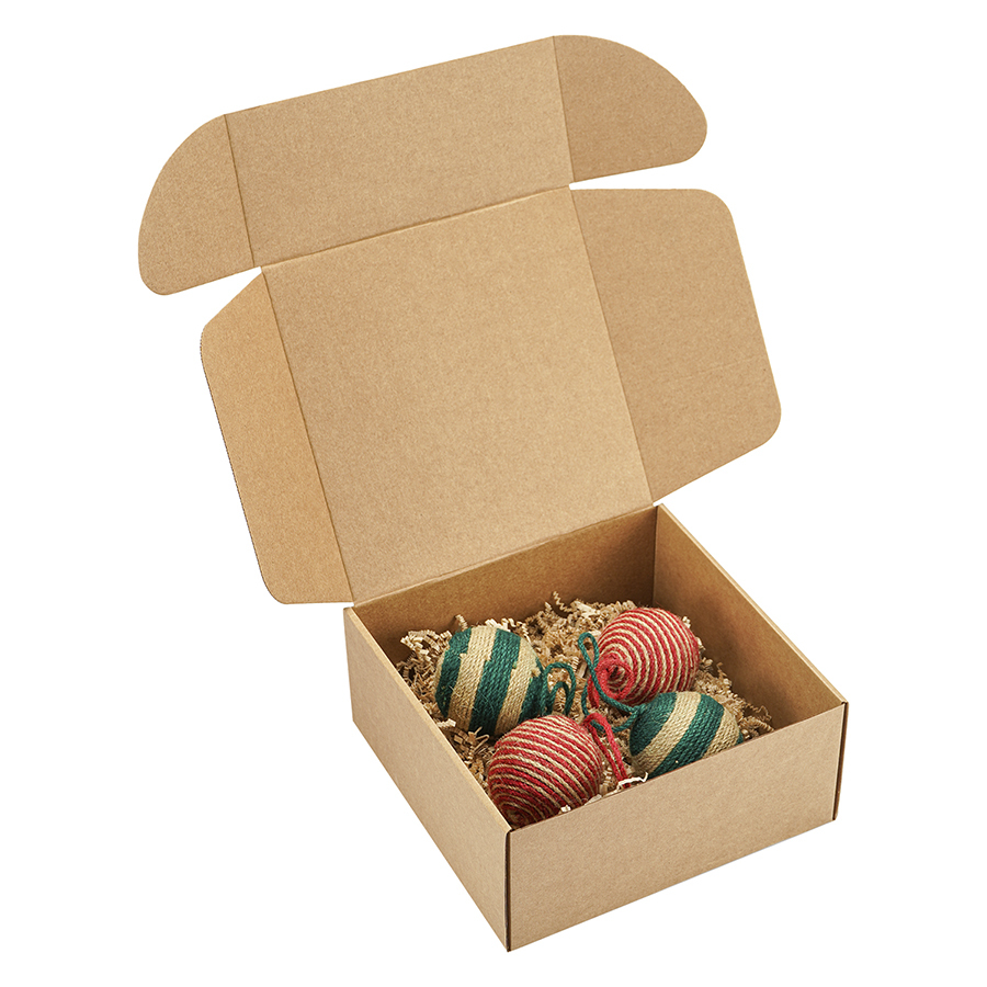 Материалы: джут, картон. Размеры: 7х7х8 см. Количество украшений в наборе: 4 шт.