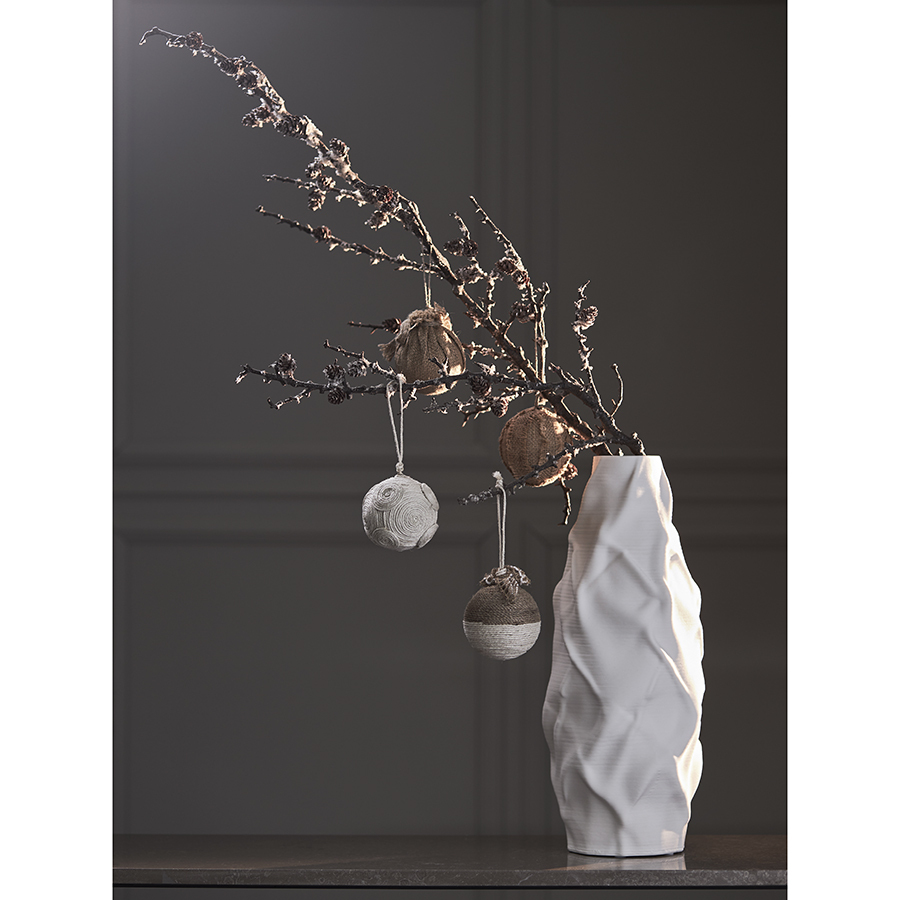 Набор елочных шаров Zero waste из джута из коллекции New Year Essential привнесет в интерьер ностальгические нотки и напомнит о временах, когда новогодние украшения создавались вручную и носили особенный характер.