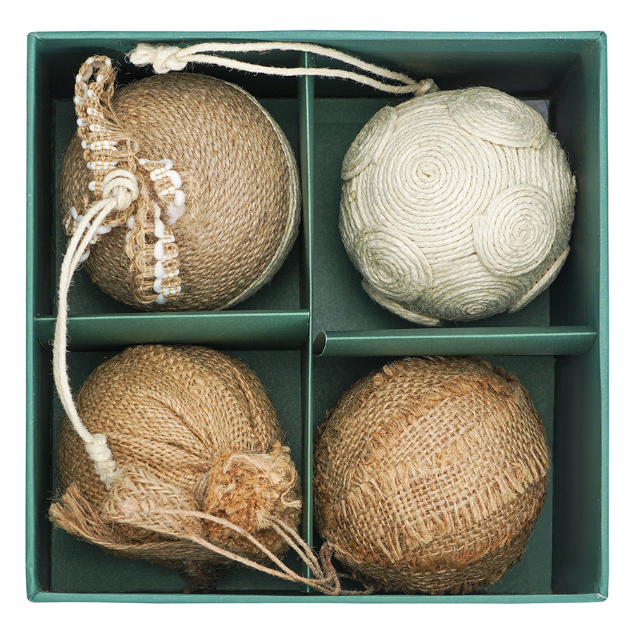 Материал: джут. Размеры: 7,5х7,5х10 см. Количество украшений в наборе: 4 шт.