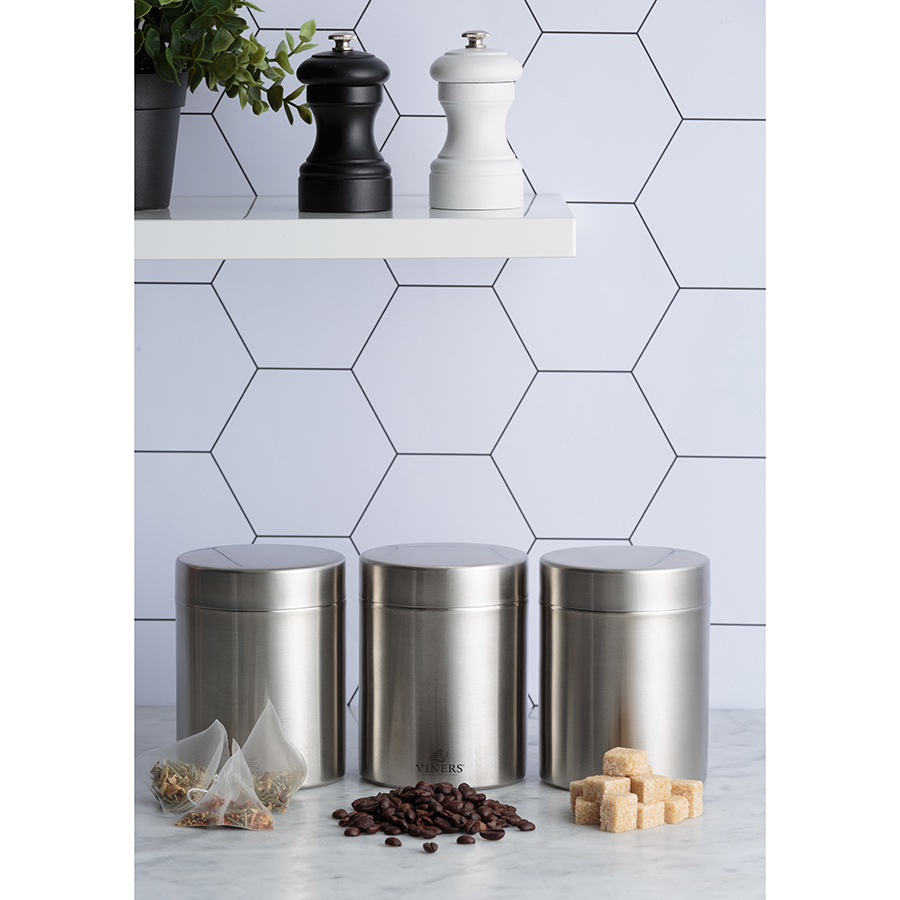 Емкости для хранения из матированной стали впишутся в интерьер любой кухни.