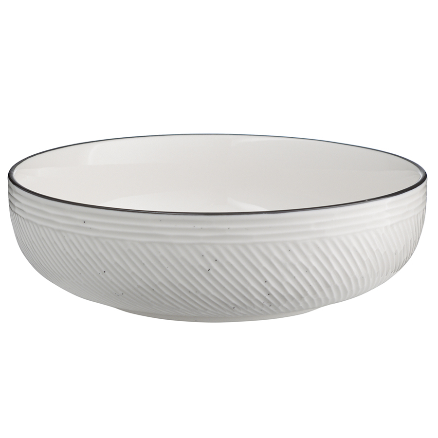 Тарелки для сервировки из белоснежного фарфора серии Contour великолепно дополнят коллекцию стильной и практичной посуды. Рельефная поверхность и декоративная окантовка придают изделиям оригинальный вид. Материал изготовления неприхотлив в уходе, не впитывает загрязнения, является экологичным и безопасным для здоровья. Глубокие емкости идеально подходят для подачи первых блюд, рагу и салатов.