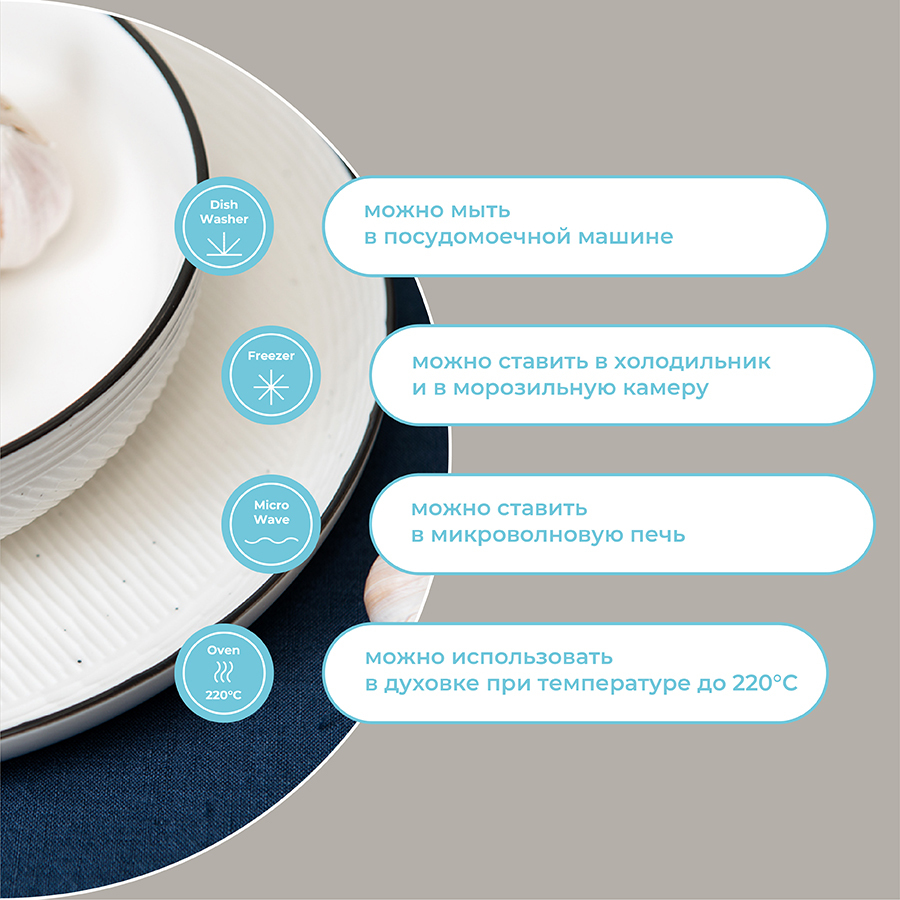 Посуду рекомендуется очищать от загрязнений в теплой воде с помощью мягкой губки с жидким средством. Допускается мытье в посудомоечной машине, использование в морозильной камере, микроволновой печи и духовке при температуре не выше 180 °C.