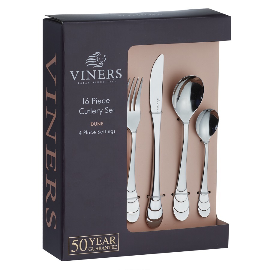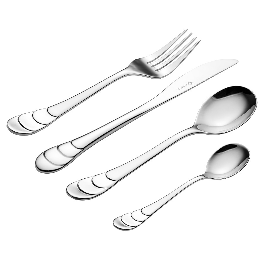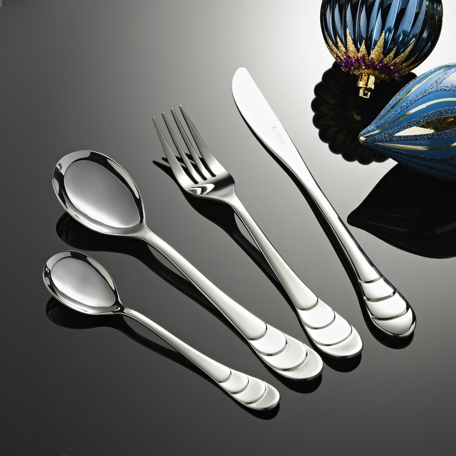 Набор из 16 столовых приборов Dune станет оригинальным украшением в сервировке стола к ужину или торжественному мероприятию. Особенность коллекции – утонченно изогнутые ручки изделий, которые обеспечивают оптимальный комфорт во время трапезы. Приборы выполнены из нержавеющей стали, устойчивой к потемнению и появлению ржавчины. Поверхность аксессуаров украшает зеркальная полировка, которая придает им особого блеска. Столовые приборы можно мыть в посудомоечной машине.