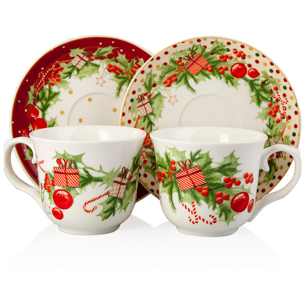 Набор из 2 чашек чайных с блюдцами 15см Остролист подарочная коробка Lamart