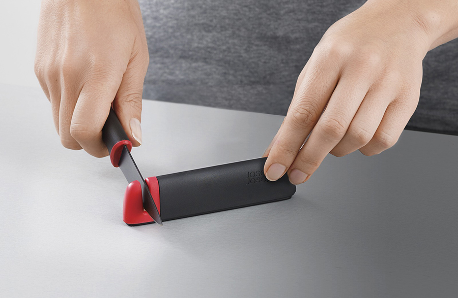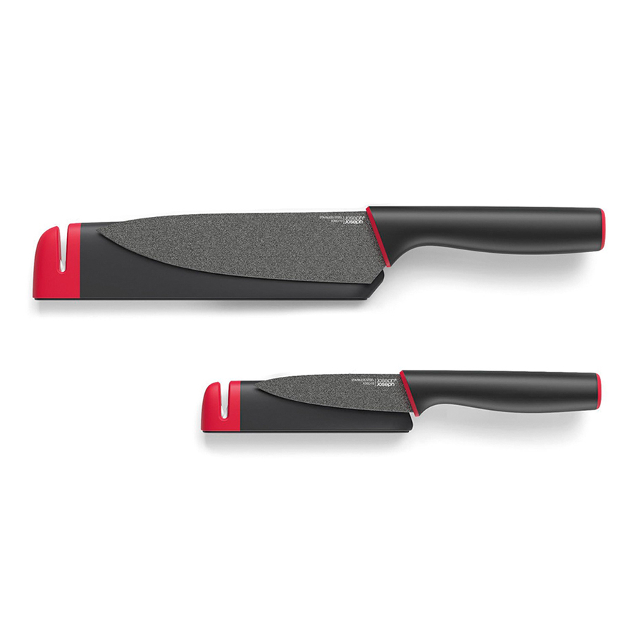 Практичный набор, в который входит универсальный поварской нож и короткий нож для чистки. Оба ножа располагают отдельными защитными чехлами со встроенными керамическими ножеточками. Благодаря неприлипающему покрытию на лезвиях, изготовленных из нержавеющей стали, готовка становится более лёгкой и гигиеничной.