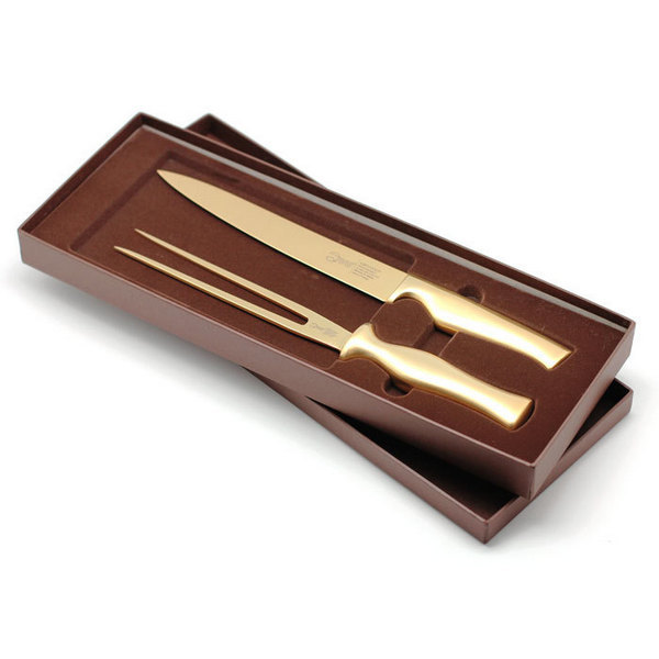 При разделки мяса удобно пользоваться специальными приборами - это вилка особой формы и нож. Набор станет незаменимым предметом на кухне. Отличительная особенность ножей - безукоризненно острое лезвие, которое не нуждается в заточке. Для поддержания ножей в рабочем состоянии достаточно 1 раз в месяц обработать край лезвия мусатом. Острые как бритва клинки выкованы методом"горячего падения" из единых слитков хирургической стали и имеют лезвие заточенное в форме конуса, которое равномерно стачивается, тем самым защищая режущую кромку ножа от разрушения и сохраняя его острым. Уникально созданные рукоятки из нержавеющей стали идеально сбалансированы, с матовой поверхностью позволяющей удобнее держать нож.