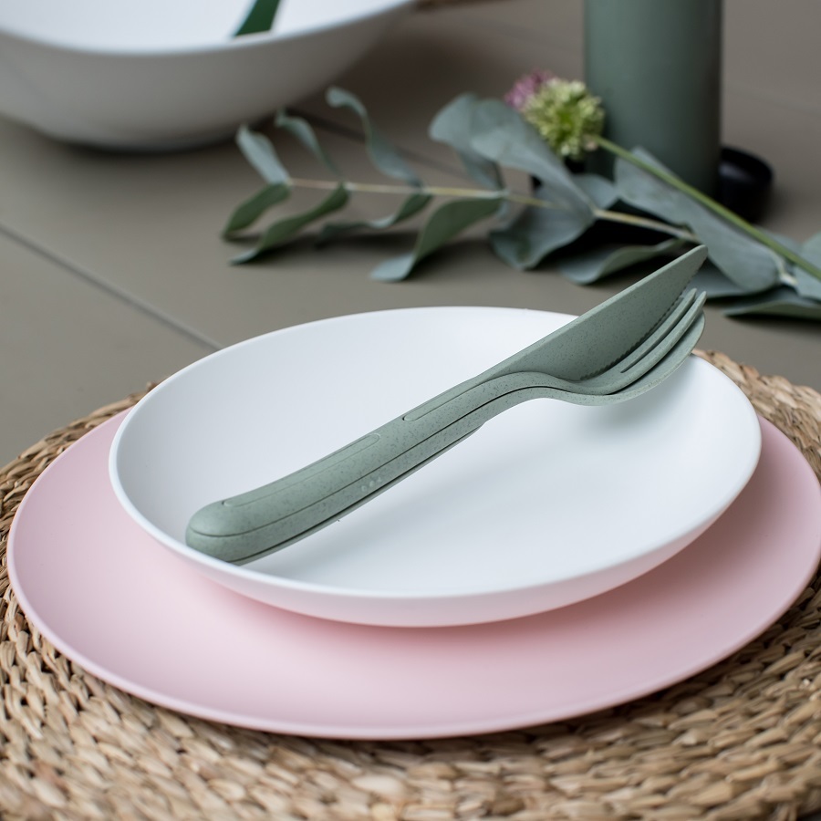 Набор из 3 столовых приборов KLIKK – это уникальные изделия, изготовленные из органического материала на основе целлюлозы – экологически чистого, нетоксичного, не содержащего формальдегида и бисфенола А. Преимущество набора в его компактности: все три прибора складываются в один, не занимая много места в дорожной сумке. Идеальный вариант для путешествий и пикников!