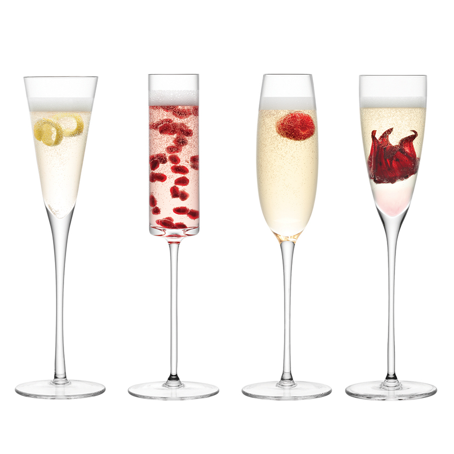 Набор из 4-х бокалов-флейт для шампанского, игристых вин и коктейлей из выдувного стекла. Объём 150-175 мл.Каждый бокал имеет свою уникальную форму — это добавит игривую нотку всей сервировке. Набор упакован в красивую коробку и станет отличным подарком всем поклонникам современного дизайна. Комбинируйте бокалы с другими предметами из коллекции Lulu, например, с рюмками, стаканами или пиалами для создания законченной композиции.