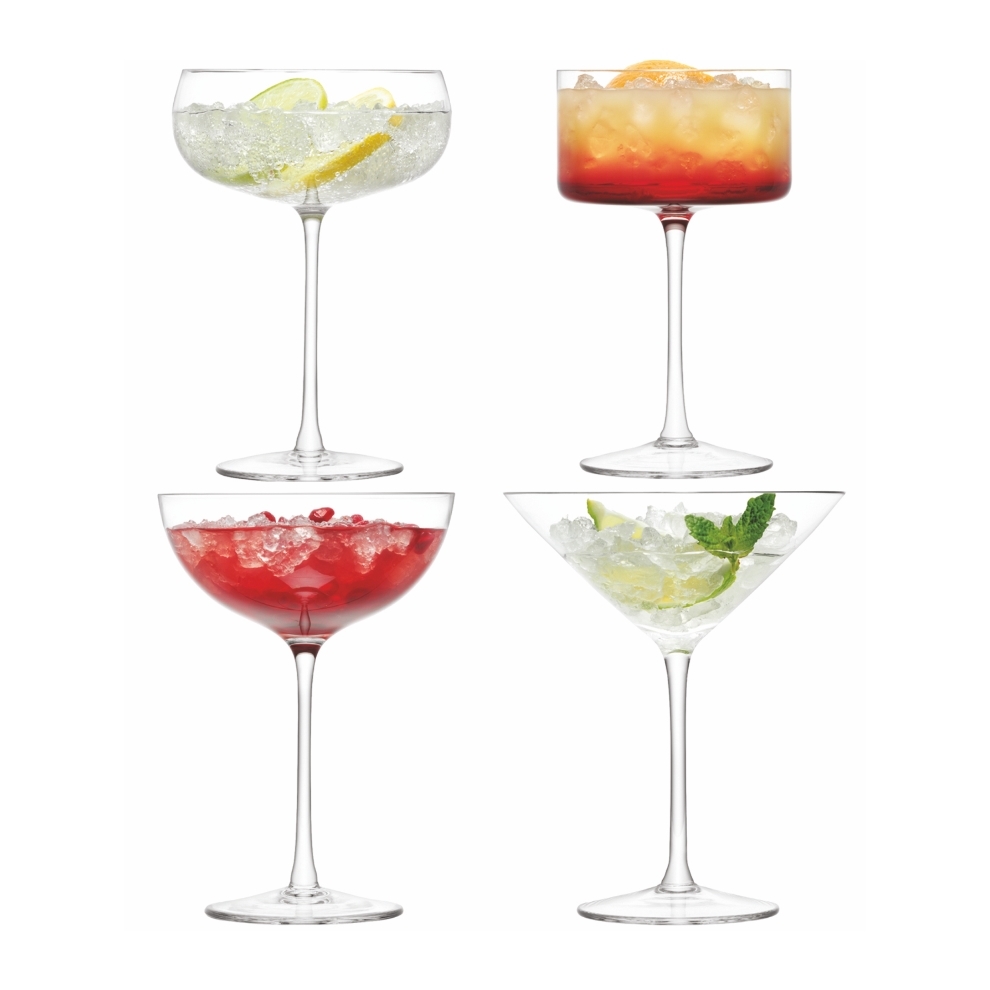 Набор из 4-х бокалов-креманок для шампанского и коктейлей из выдувного стекла. Объём 200-310 мл. Каждый бокал имеет свою уникальную форму — это добавит игривую нотку всей сервировке. Набор упакован в красивую коробку и станет отличным подарком всем поклонникам современного дизайна. Комбинируйте бокалы с другими предметами из коллекции Lulu, например, с рюмками, стаканами или пиалами для создания законченной композиции.