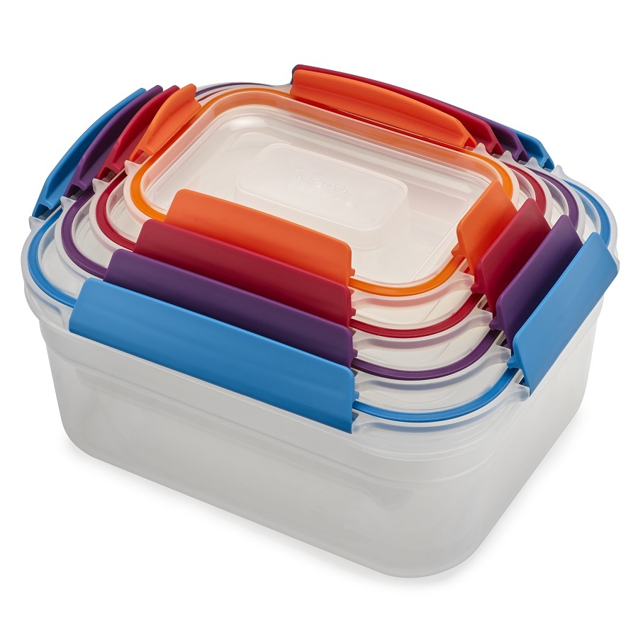 Компактный набор из 4 контейнеров для различных продуктов. Как известно, обычные ёмкости для хранения продуктов, когда не используются, занимают очень много ценного пространства в кухонном шкафу. Крышки и контейнеры часто теряются или не соответствуют друг другу по размеру. Наборы Nest™ Lock представляют собой удачное решение этой проблемы.