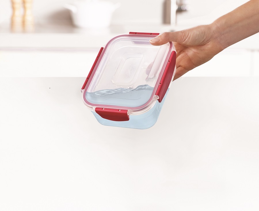 Продуманный дизайн позволяет хранить контейнеры, занимая минимум места на полке.