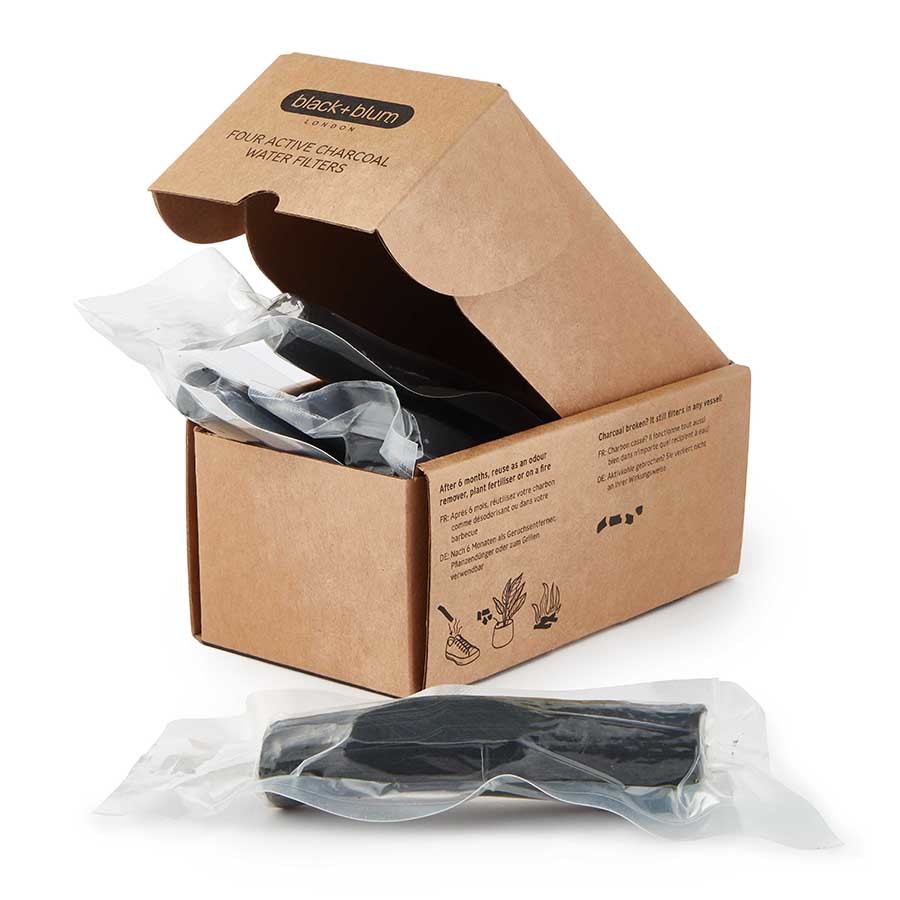 Фирменный угольный фильтр Binchotan от Black+,Blum производится и работает по старинной японской технологии. Положите его в бутылку с обычной водой и оставьте на 6-8 часов. Уголь вытянет из воды все вредные вещества, наполнит ее полезными минералами и выровняет уровень Ph. Используйте фильтр таким образом 3 месяца, затем прокипятите 10 минут и используйте еще 3 месяца. По истечении этого времени уголь эффективно утилизируется в качестве подкормки для домашних растений.Уголь можно положить в любую емкость. Особенно удачно он поместится в фирменных эко-бутылках и флягах Black+,Blum, где горлышко специально для этого спроектировано широким. Вода необходима нашему организму каждый день. Очищенная и обогащенная угольным фильтром она будет полезной вдвойне.