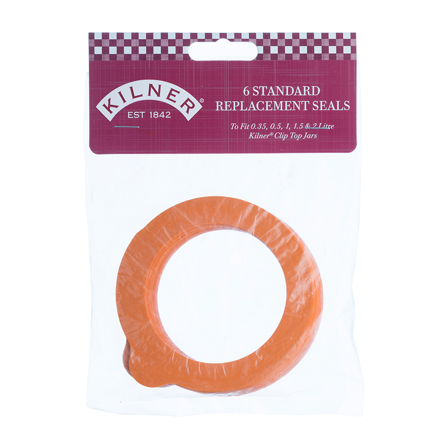 Набор из 6 резиновых прокладок для банок Kilner объёмом от 0,35 до 2 л. Они обеспечивают более плотное сцепление крышки с краями крышки и предотвращают попадание воздуха в закрытую банку.
