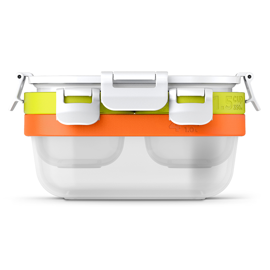 Водонепроницаемые запорные крышки обеспечивают полную герметичность продуктам. Каждый контейнер снабжен цветной полоской из силикона, которая поможет хозяйке быстро найти нужный размер. Охлаждающий блок поддерживает оптимальную температуру содержимого контейнера в течение длительного времени. Его можно разместить внутри или снаружи емкости. Контейнеры можно использовать в микроволновой печи и морозильной камере, а также мыть в посудомоечной машине.