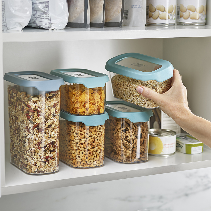 Набор из 5 контейнеров для хранения CupboardStore идеально подходит для сухих продуктов. Компактные емкости помогут освободить драгоценное место в кухонных шкафчиках. Контейнеры выполнены из прозрачного пластика, благодаря чему открывается отличная видимость и доступ к хранящимся продуктам. Герметичные крышки снабжены удобными язычками для открывания емкостей.