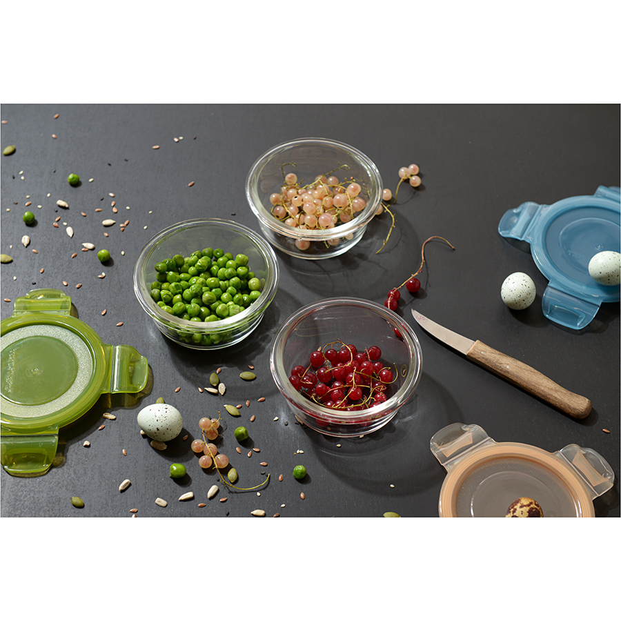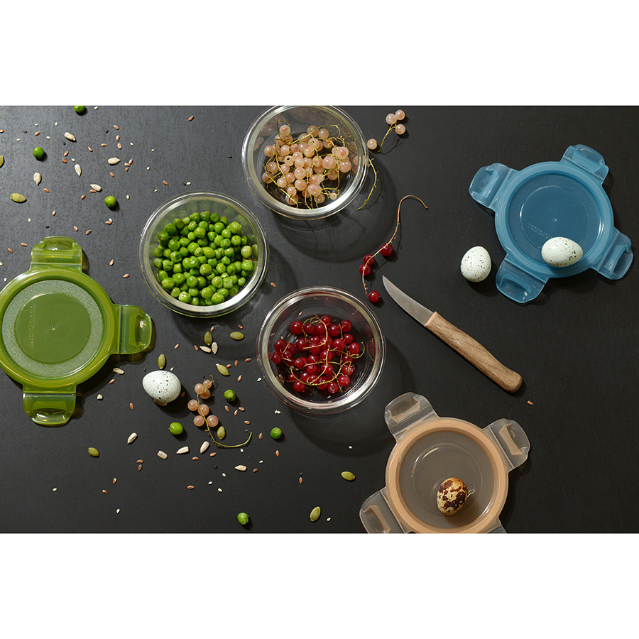 В набор входят 3 контейнера по 210 мл. Контейнеры выполнены из прочного боросиликатного стекла. Пластиковые крышки снабжены надежными закрывающимися механизмами, которые гарантируют 100% герметичность. Материалы не содержат токсинов и бисфенола-А.