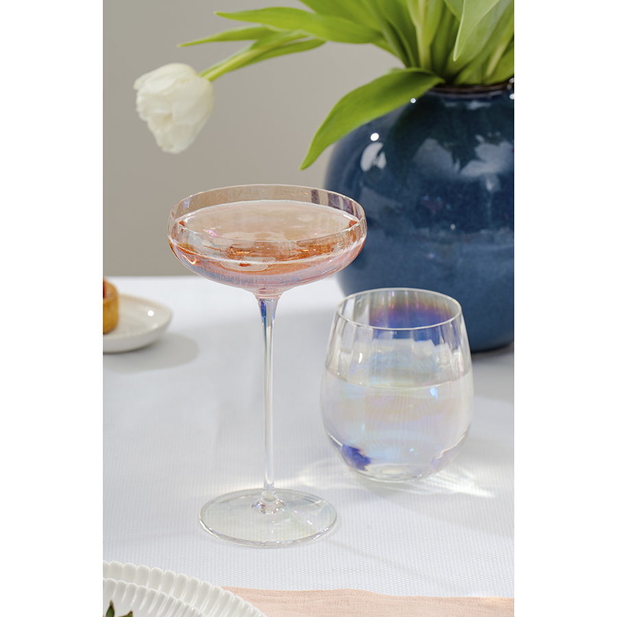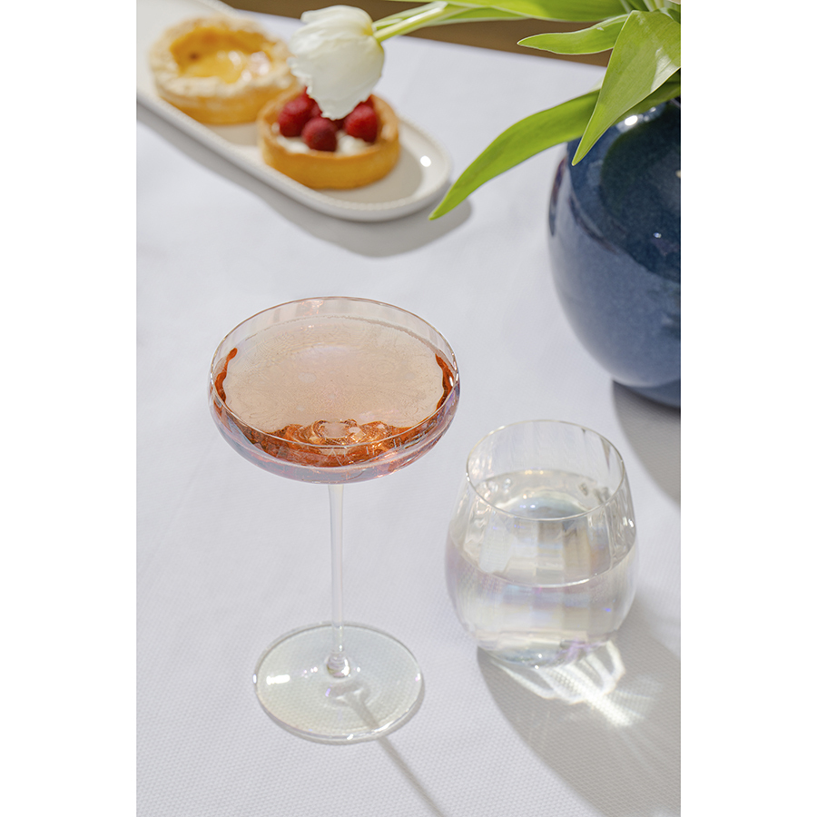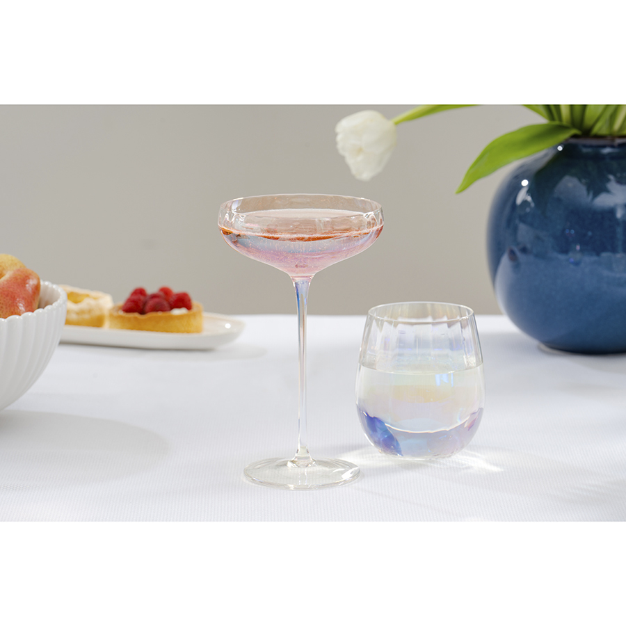 Линейка Gemma Opal привлекает лаконичным дизайном и необычным цветовым решением в виде радужных переливов. Вся посуда выполнена вручную из выдувного стекла. Такой способ производства позволяет играть с линиями и изгибами, создавая уникальные и неповторимые продукты. Изделия получаются более прочными, но при этом тоньше и прозрачнее аналогов из обычного стекла.