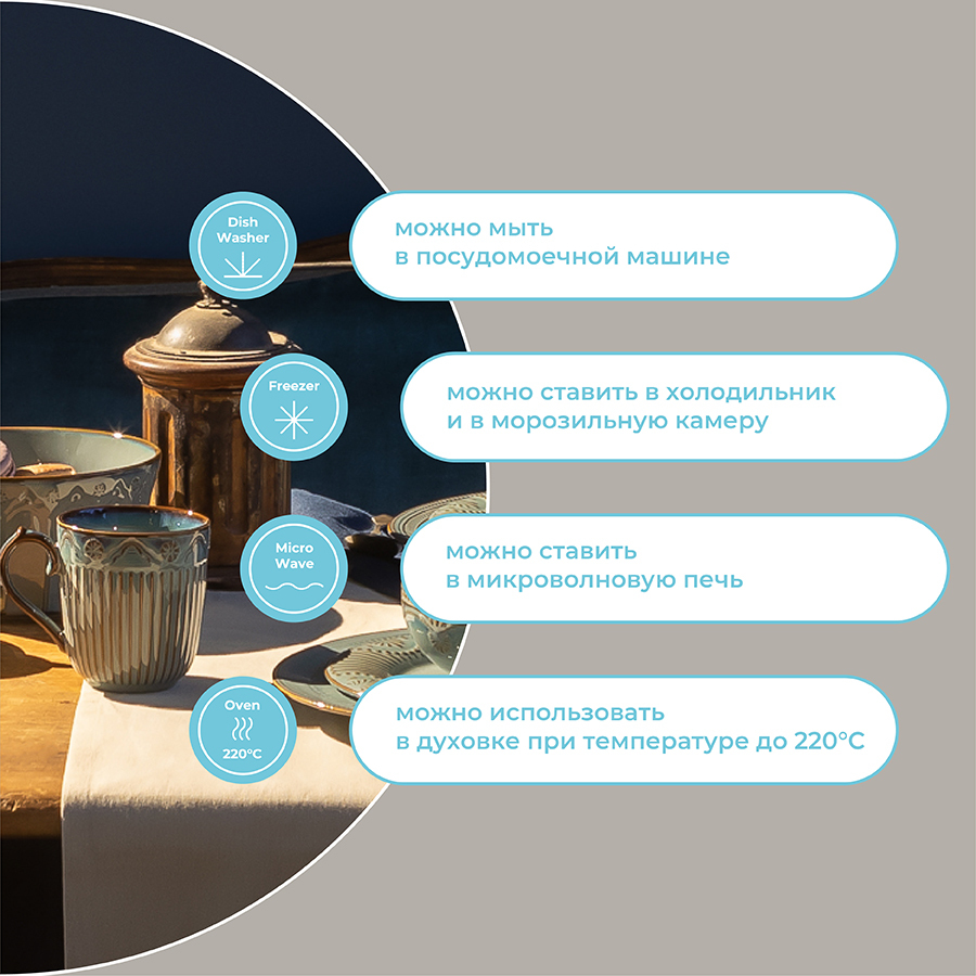 Набор Antique станет неотъемлемой частью уютного чаепития, а также настоящим украшением повседневной или праздничной сервировки. Дизайн в ретро-стиле придает посуде особый шарм. Материал изготовления неприхотлив в уходе, не впитывает загрязнения, является экологичным и безопасным для здоровья. Кружка большого объема позволяет в полной мере насладиться любимым напитком.