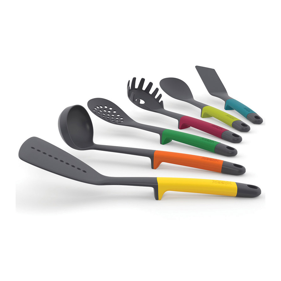 Входит в серию кухонных приборов Elevate™ , разработанную с целью минимизировать беспорядок во время готовки. Каждый прибор оснащен инновационной утяжеленной ручкой, благодаря которой испачканная часть инструмента всегда остается навесу и не касается рабочей поверхности.