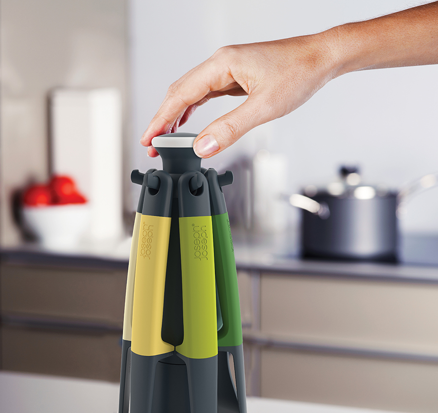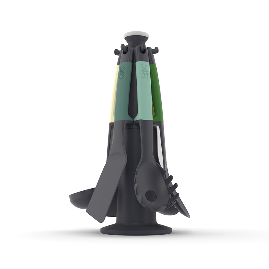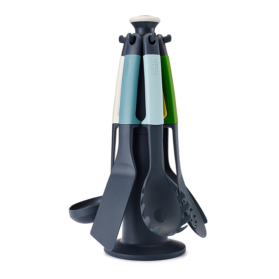 Набор кухонных инструментов , , на вращающейся подставке, выполненный в новой цветовой гамме. Запатентованный дизайн Joseph Joseph.