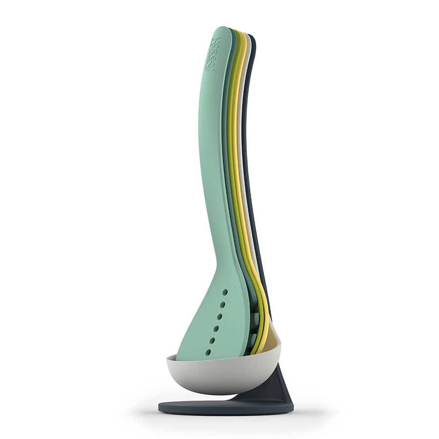 Комплект включает 5 самых необходимых кухонных приборов, а также магнитную подставку для их хранения. Инструменты надежно крепятся друг к другу благодаря небольшим магнитам, встроенным в рукоятки. Этот разноцветный набор не только великолепно смотрится, но и избавляет своих владельцев от необходимости приобретать какие-либо отдельные емкости для хранения приборов.