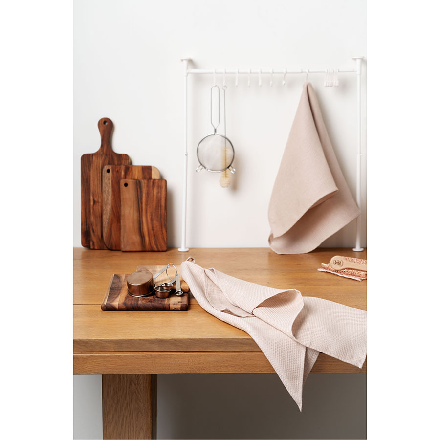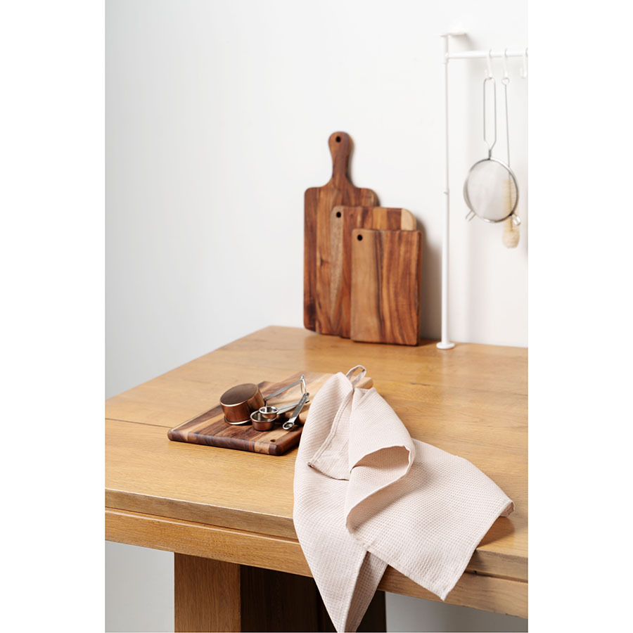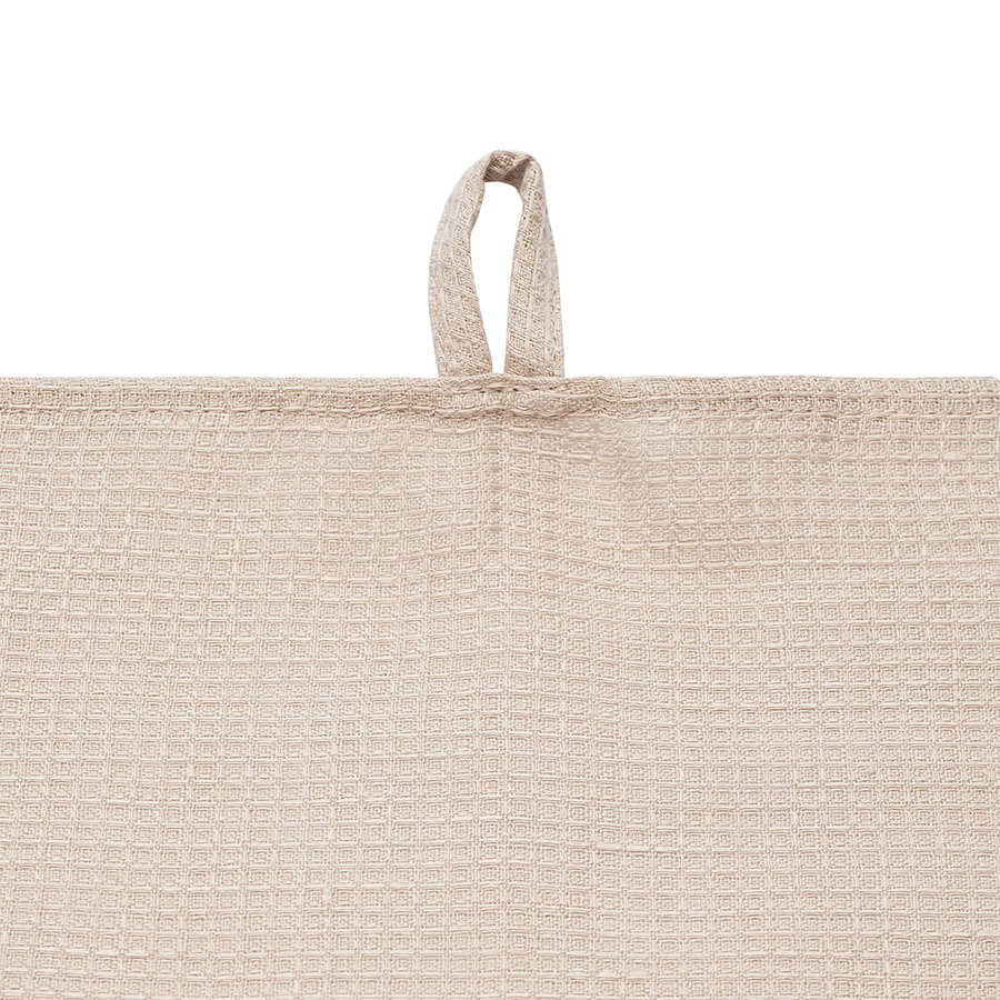 Набор из двух вафельных полотенец бежевого цвета для кухни из коллекции Essential – отличный вариант для ценителей спокойных природных оттенков. Изделия изготовлены из умягченного льна, который хорошо впитывает влагу и быстро сохнет. Как известно, лен не только прекрасно смотрится в интерьере, но и предотвращает развитие бактерий, что особенно актуально для кухни и столовой. Полотенце можно повесить на крючок, благодаря удобной петельке. Данная линейка товаров представлена в трех цветах: сером, бежевом и темно-синем. Кухонные полотенца упакованы в маленькую крафтовую коробку, поэтому могут стать приятным подарком как себе, так и близкому человеку. Состав - 100% лен Кухонное полотенце Размер 50х70 ! Максимальная температура стирки 30°C ! Гладить при максимальной температуре 110°C ! Возможна барабанная сушка при низкой температуре ! Не отбеливать ! Возможна сухая чистка