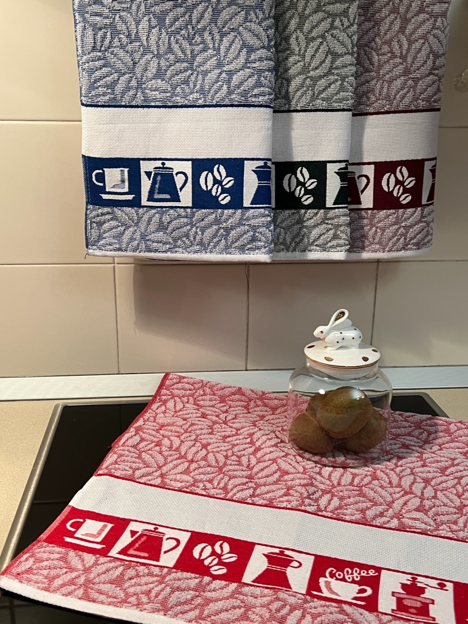 Нежные и мягкие, очень приятные на ощупь махровые кухонные полотенца.