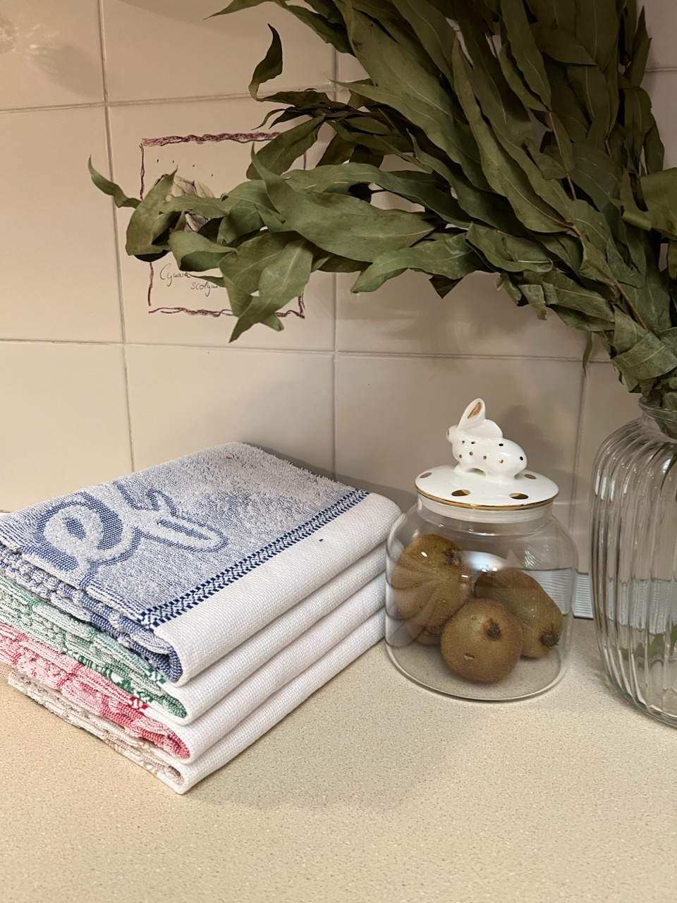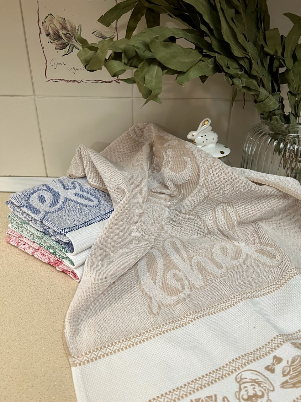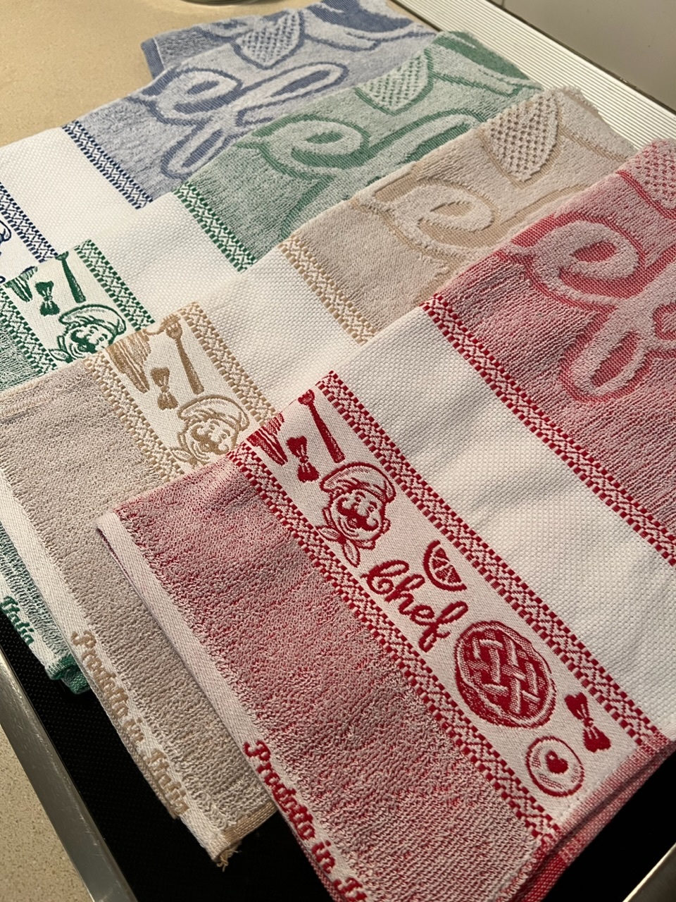 Нежные и мягкие, очень приятные на ощупь махровые кухонные полотенца.