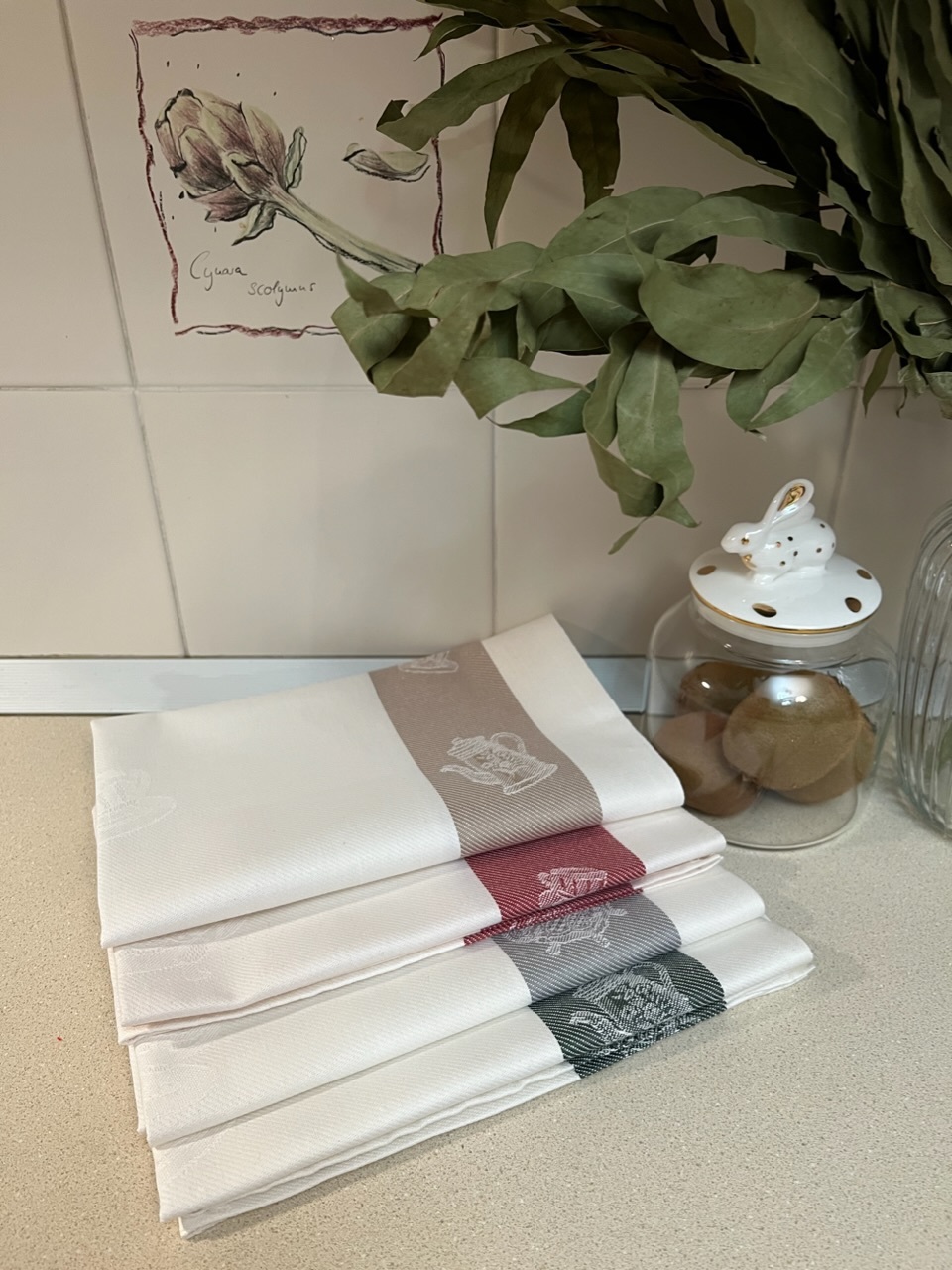 Красивые, плотные и приятные на ощупь жаккардовые кухонные полотенца.
