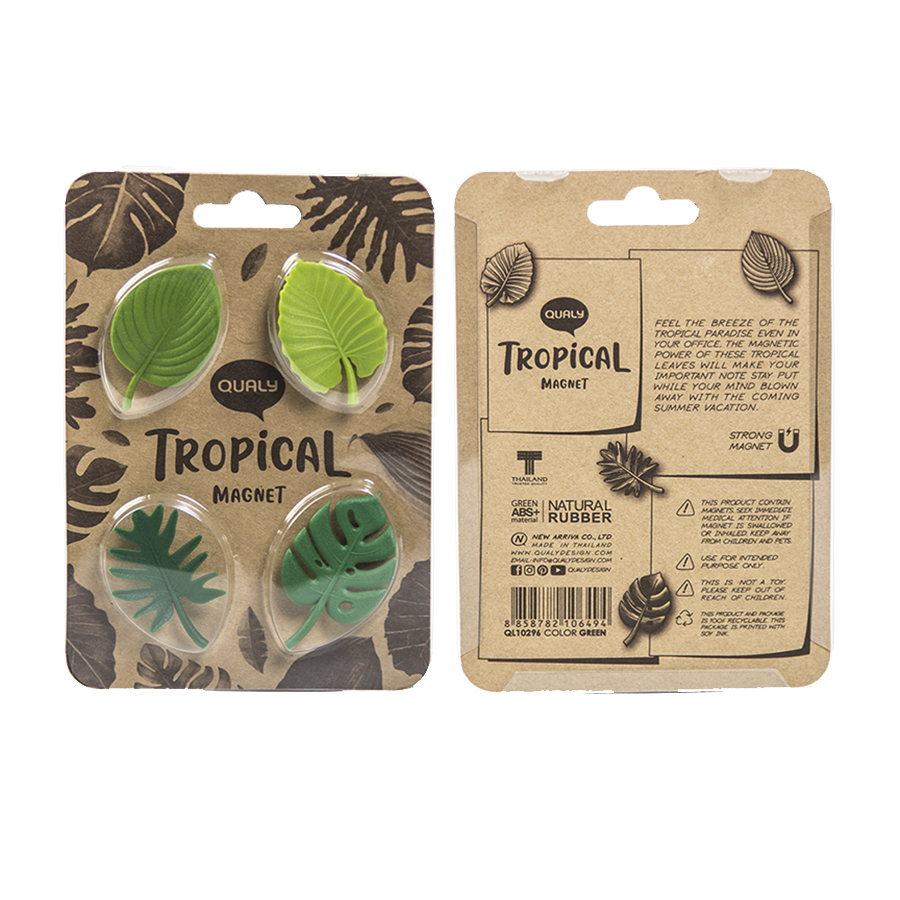 Набор из четырех магнитов Tropical – прекрасный способ не забыть о важных задачах или начать новый день с мотивирующих мыслей и приятных пожеланий. Вы можете крепить с их помощью рецепты, стикеры с напоминаниями, документы и многое другое. Главное – найти подходящую металлическую поверхность. Дизайн в виде тропических листьев освежит интерьер, вызовет приятные мысли о путешествиях и летних каникулах. Изделия выполнены из экологичного АБС-пластика. Материал безвредный для окружающей среды, практичный и износостойкий.
