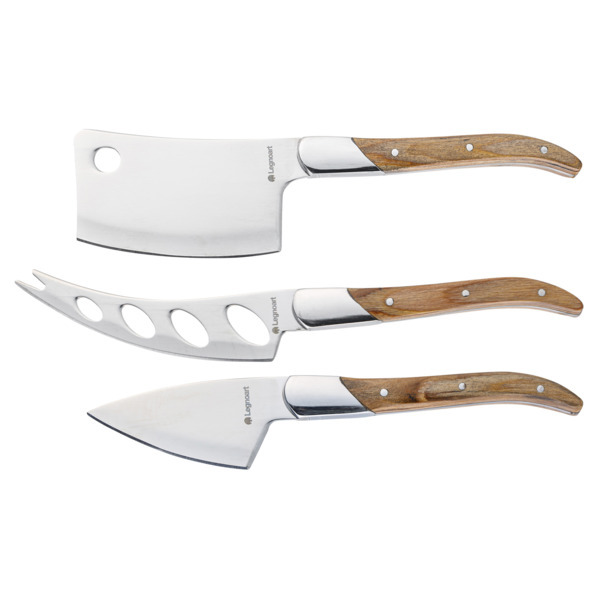 Изысканный набор ножей незаменим для настоящих ценителей сыра. Ножи с рукояткой из дерева очень удобны для нарезки различных сортов сыра.лезвия из японской кованой стали особой, продуманной формы, не деформируют сыр и кусочки получаются ровными и красивыми. Набор состоит из трёх ножей, каждый из которых предназначен для работы с сыром определенного сорта: нарезки твёрдых и мягких сыров и намазывания сливочных сортов сыра. В стильной коробке из эко-кожи этот набор выглядит очень презентабельно.