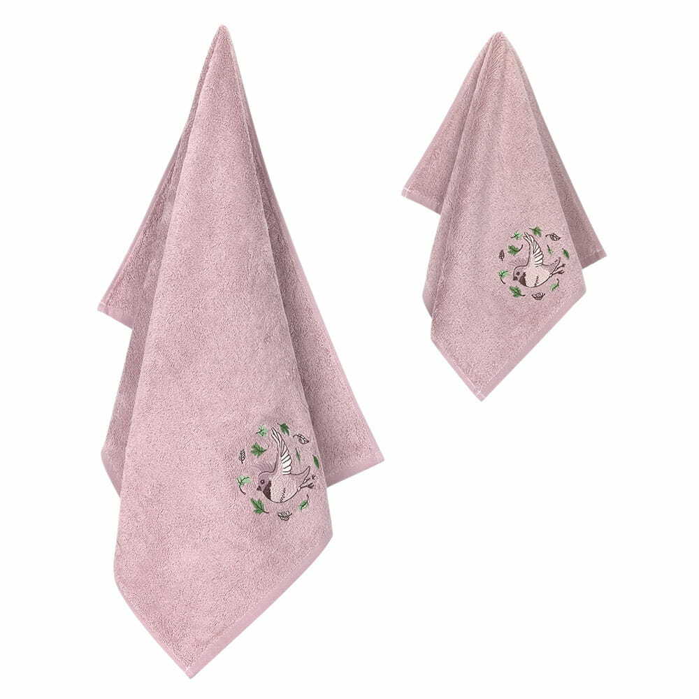 Набор полотенец 2шт 30х50,50х90 Arya home Bird розовый