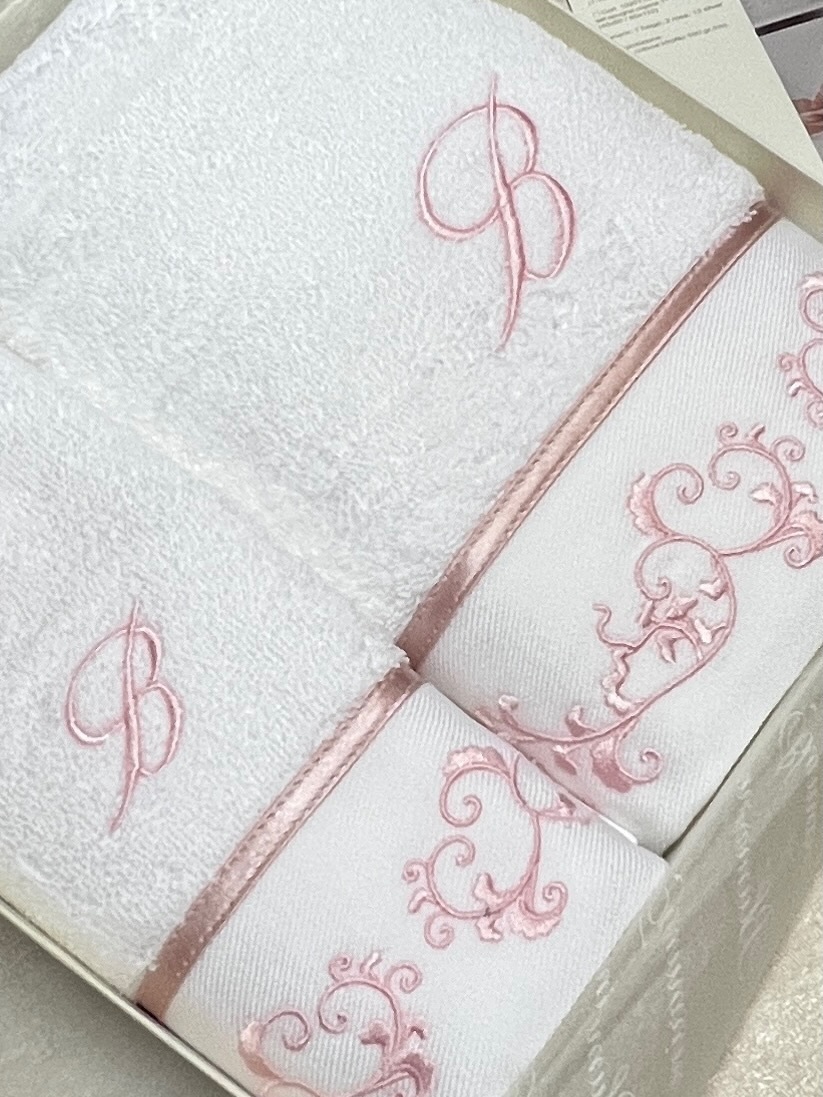Набор полотенец 2шт Blumarine Emmanuela Rosa белый с розовым