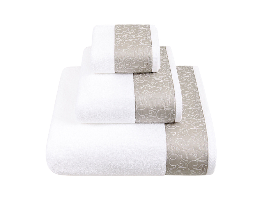 Комплект CASTELLO из 3 полотенец, р-р: (30x50,50х100,100х150), цвет: белый/серо-бежевый