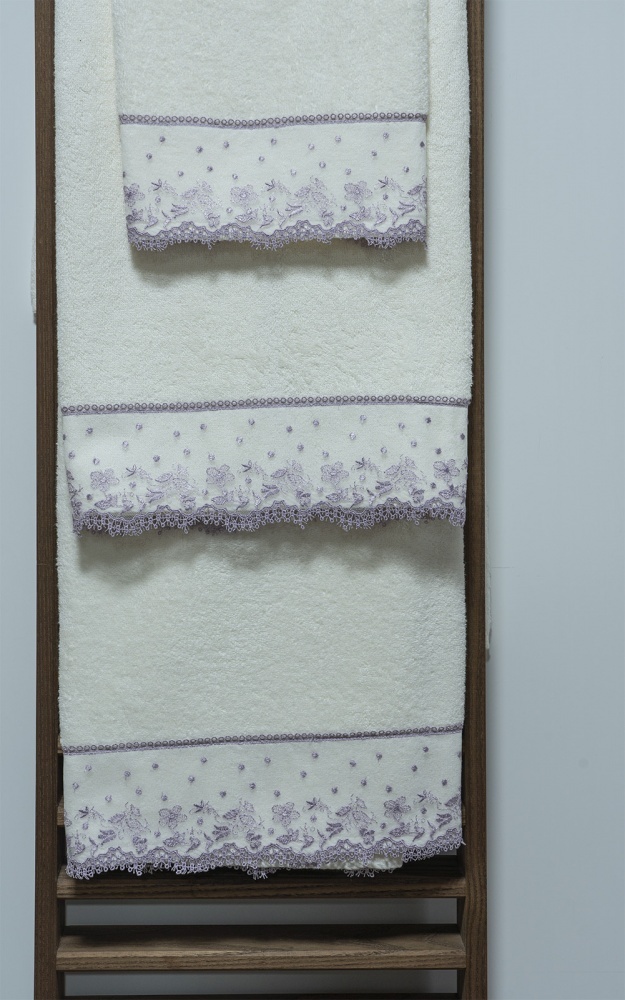 Набор полотенец 3шт Sandri Prato Fiorito с сиреневым кружевом