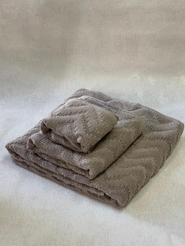 Набор мягких элегантных рельефных полотенец из крученной двойной хлопковой нити, плотностью 500 г/кв.м. Состав: 60% бамбук, 40% хлопок.