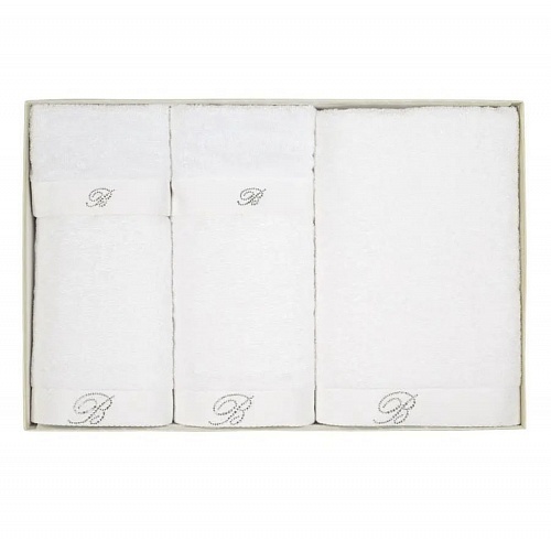 Комплект из 5 полотенец с логотипом от Swarovski. 1 банное полотенце: 100x150 см, 2 полотенца: 40x60 см, 2 полотенца: 60x110 см.