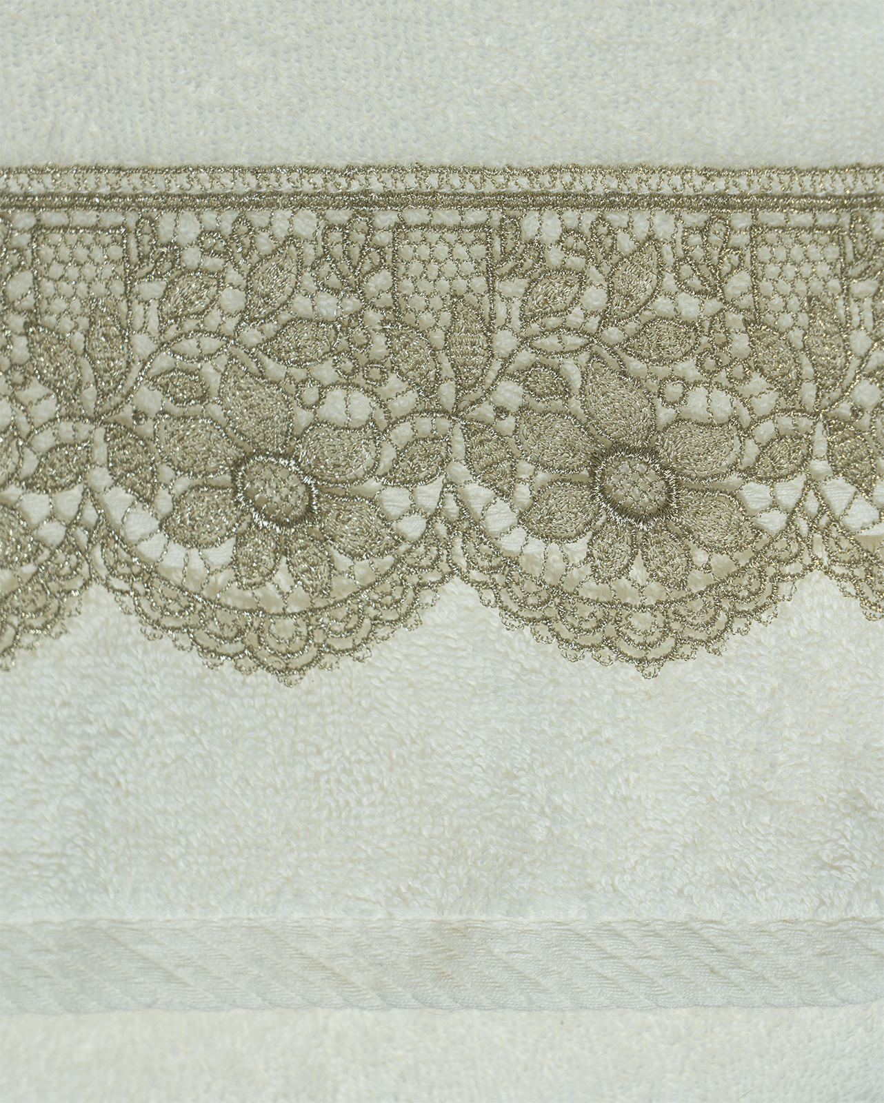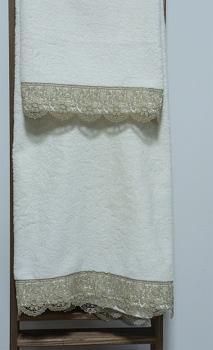 Набор из 5 роскошных высококачественных полотенец с нежным кружевом. В набор входят: 100х150 см, 2 шт - 60х110 см, 2 шт - 60х40 см. Состав: 100% хлопок.
