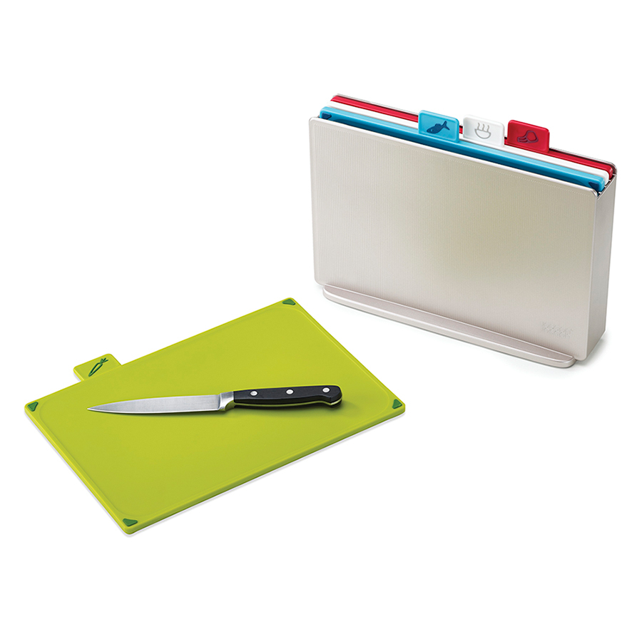 Силиконовые ножки на досках препятствуют скольжению. Инновационное покрытие досок не дает ножам затупиться.