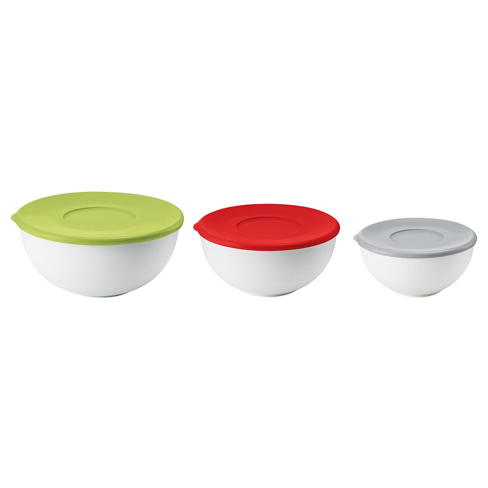 Говоря кратко, эти новые салатницы станут ценными помощницами на кухне, но и не только - вы можете использовать их в офисе или взять с собой на природу, чтобы насладиться вкусной и полезной пищей на свежем воздухе. Набор включает три белых салатницы с крышками серого, красного и зеленого цвета. Можно мыть в посудомоечной машине.