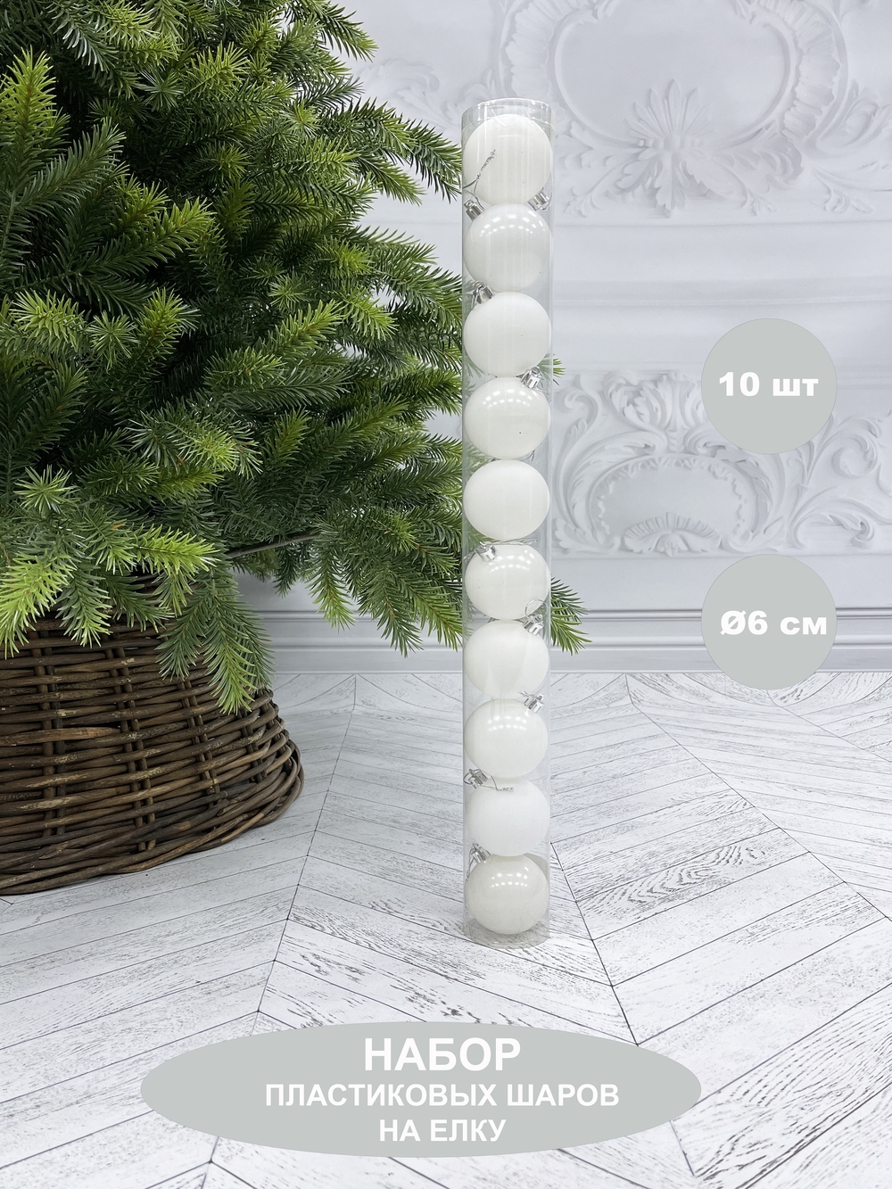 Набор пластиковых шаров ø 6 см молочный белый 10 шт в тубусе.