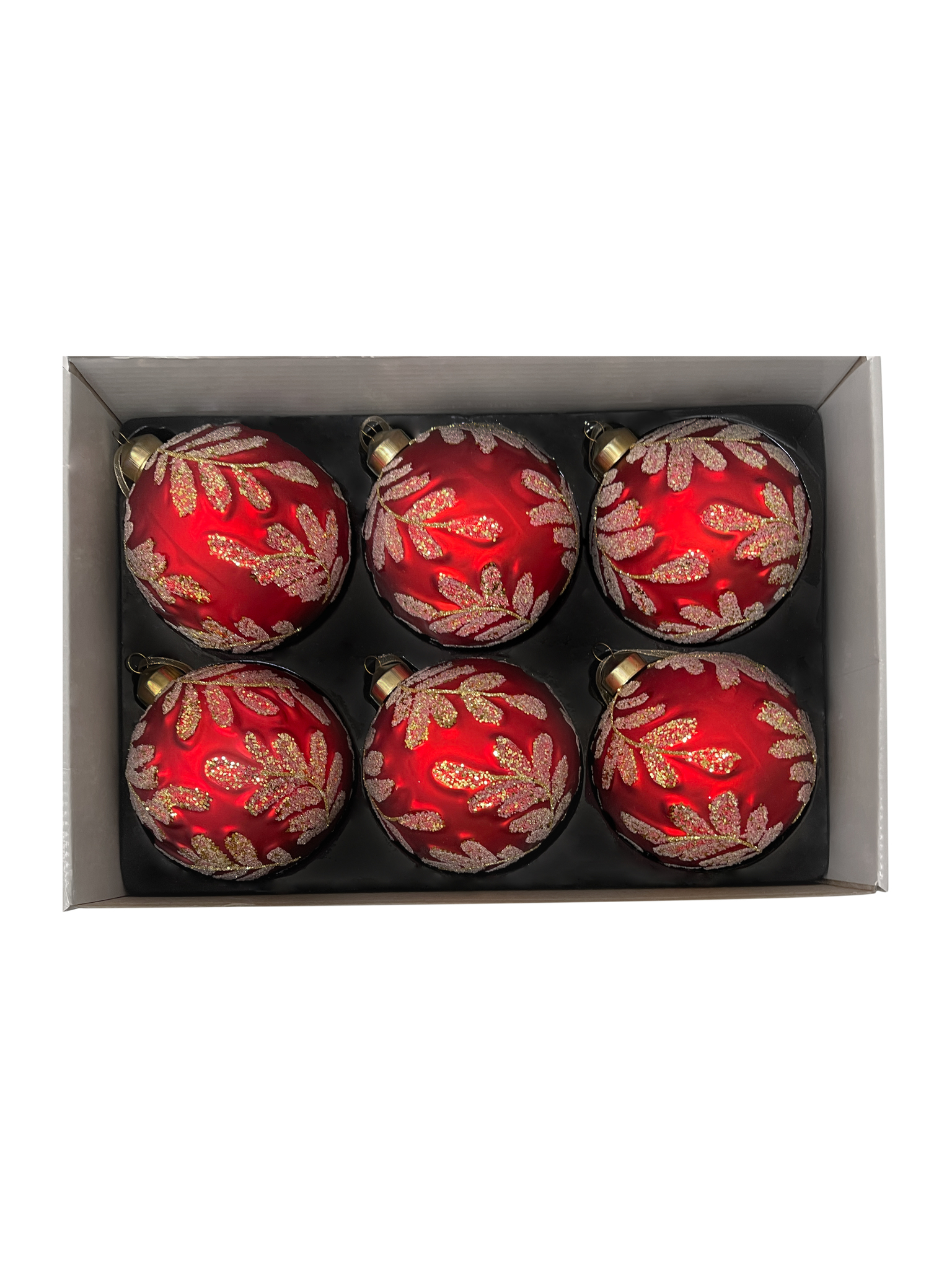 Набор шаров 10см 6шт ChristmasDeLuxe красный с золотой веткой