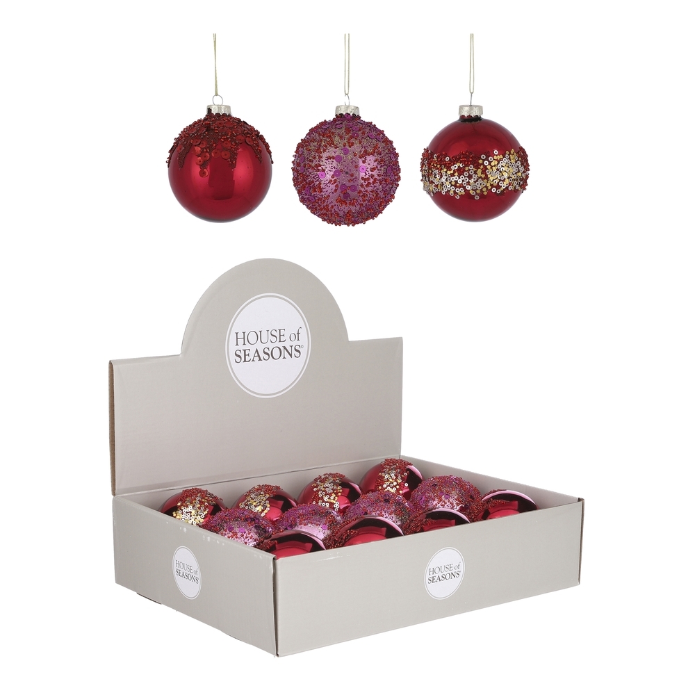 Набор шаров 12шт 8см House of Seasons красный/малиновый 3 вида в ассортименте