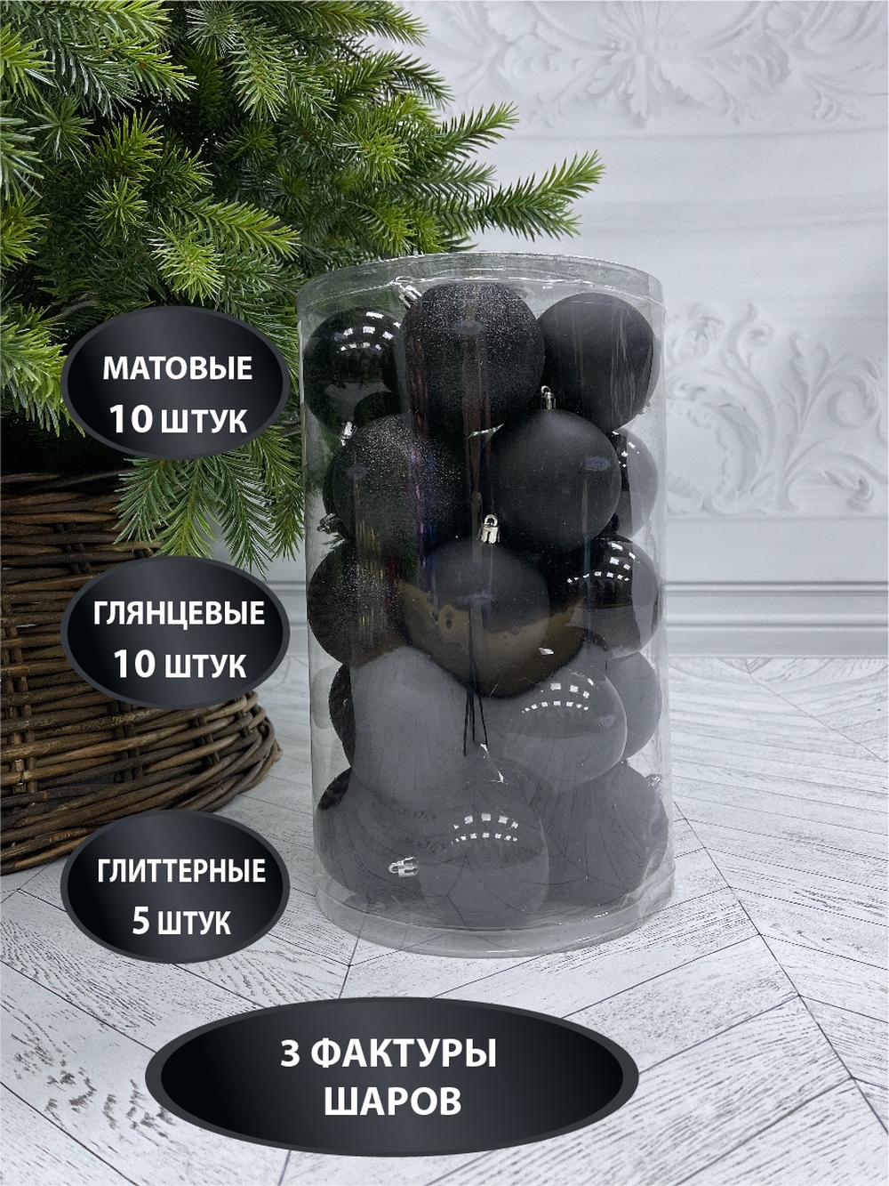 Набор пластиковых шаров ø 8 см 25 шт черный в прозрачной упаковке.