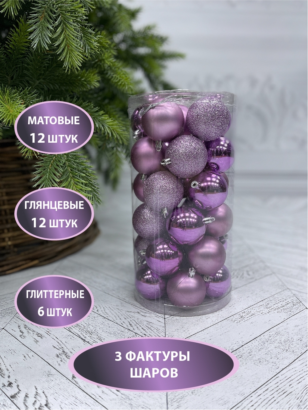 Набор пластиковых шаров ø 6 см 30 шт лиловый в прозрачной упаковке.