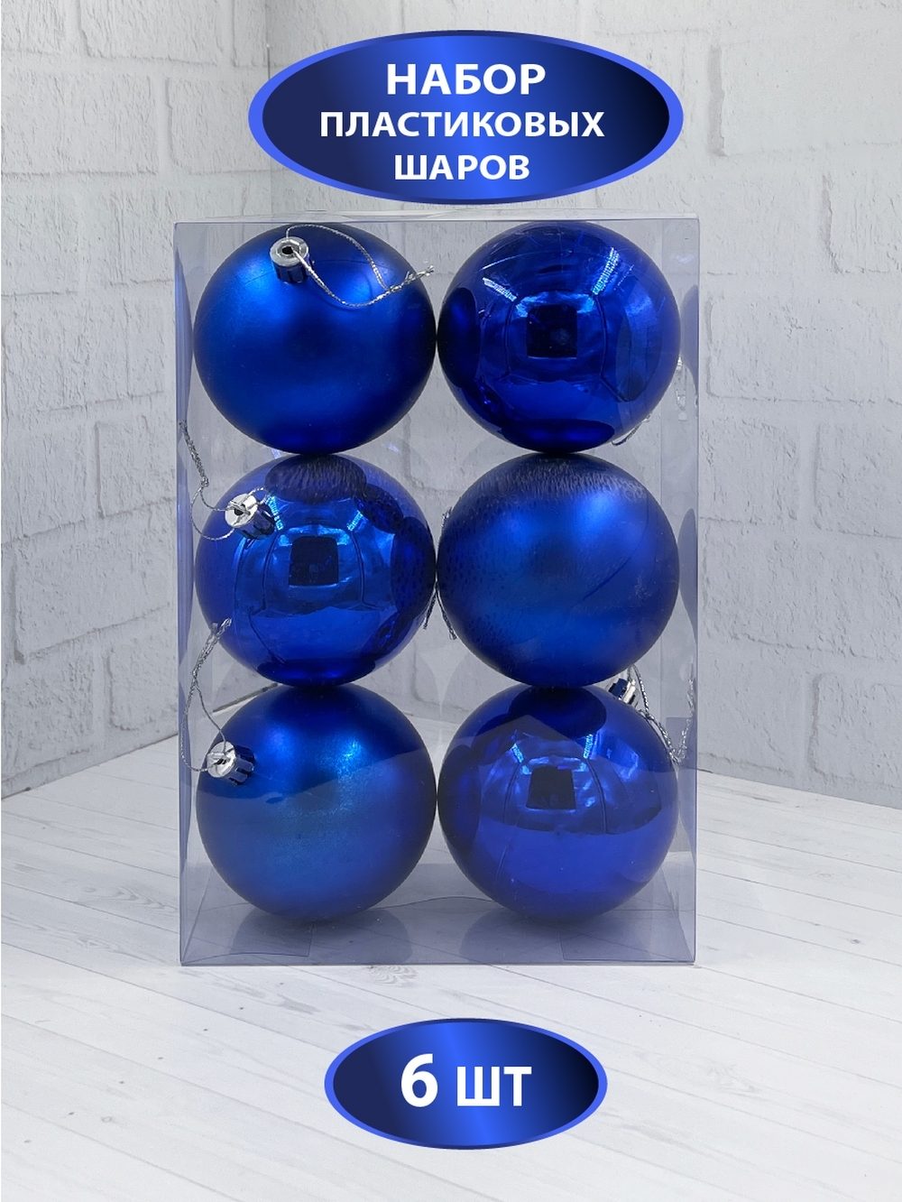 Набор пластиковых шаров ø 8 см синий 6 шт в прозрачной упаковке.