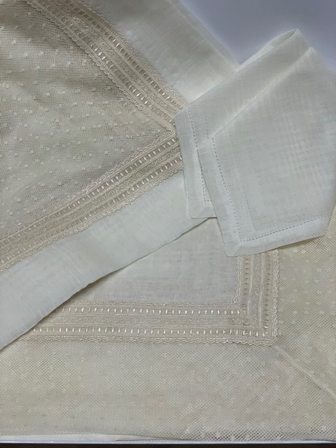 Приятный сюрприз для любителей устраивать званые обеды и романтические ужины - прекрасное столовое бельё в классическом стиле. Это салфетки и скатерти с кружевом сливочного цвета торговой марки GAMBA. Цветы и свечи не обязательны, но желательны, хорошее настроение обеспечено.