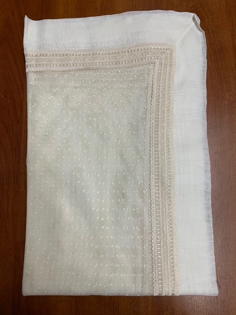Все скатерти этой фабрики отличаются особенной изысканностью. Изготавливаются из высококачественных тканей, проходят специальную обработку благодаря которой ткань приобретает легкость, после стирки не садится, легко гладится. Кружево пр-ва Швейцарии.